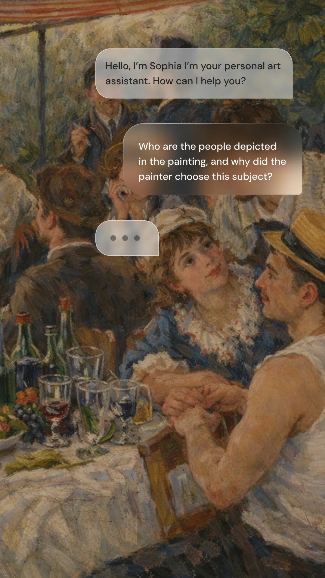 Sophia offre a musei, istituzioni ed eventi un’esperienza personalizzata, scalabile, misurabile, ed accessibile. Usufruibile da tutti gli utenti direttamente da smartphone, senza app, download o dispositivi aggiuntivi.